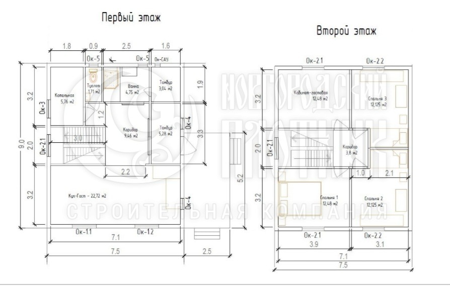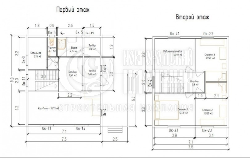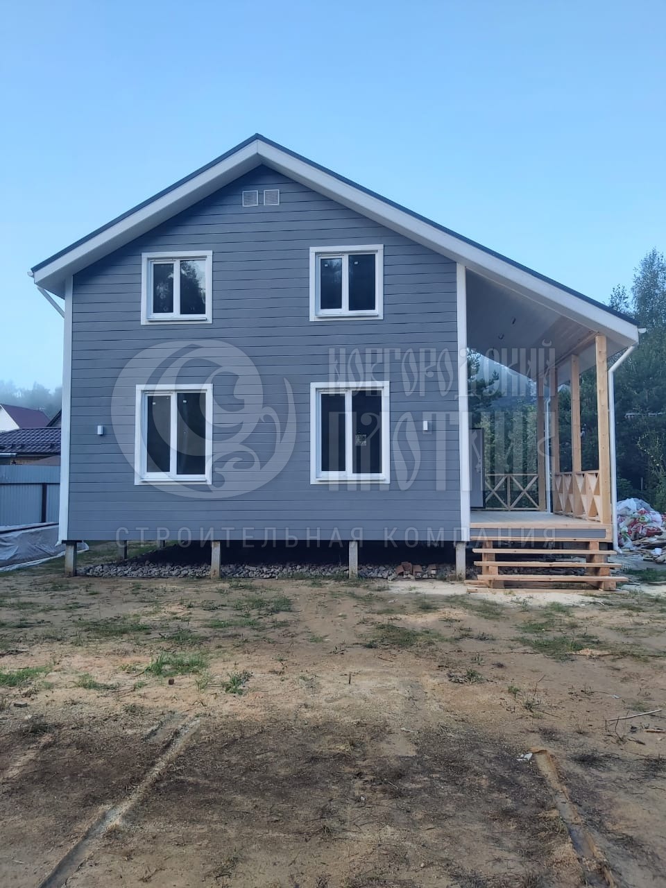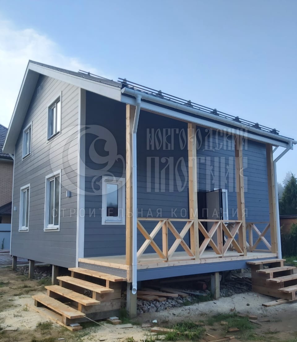 Каркасный полутораэтажный дом 7.5х9м с крыльцом (индивидуальный проект)