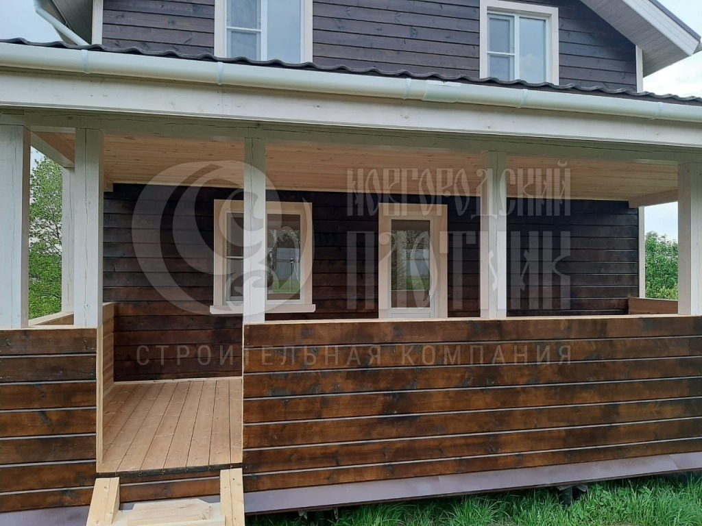Каркасный полутораэтажный дом 7х8м с открытой террасой 3х7м