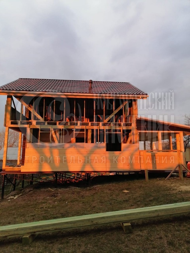 В мае 2020г. завершилось строительство каркасного дома по индивидуальной планировке. Каркас стен толщиной 200мм снаружи обшит имитацией бруса, внутри вагонкой. Утепление стен, полов и потолков - каменная вата Роквул толщиной 200мм. Высота простенка 1,8м. Окна ПВХ двухкамерные. Кровля металлочерепица.