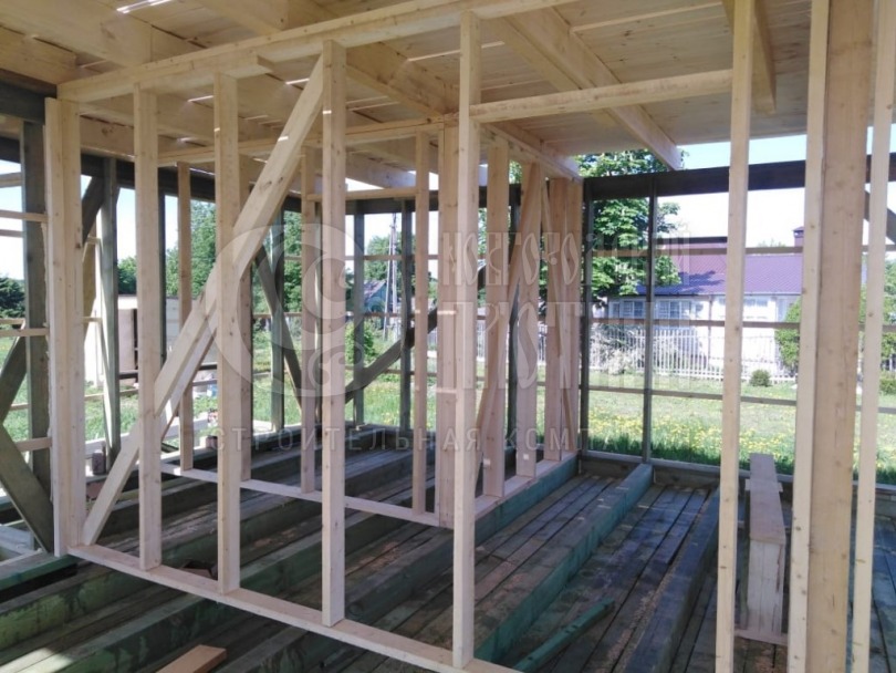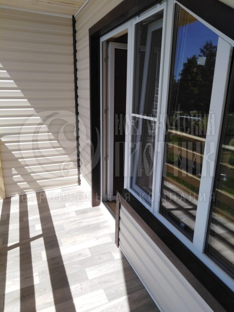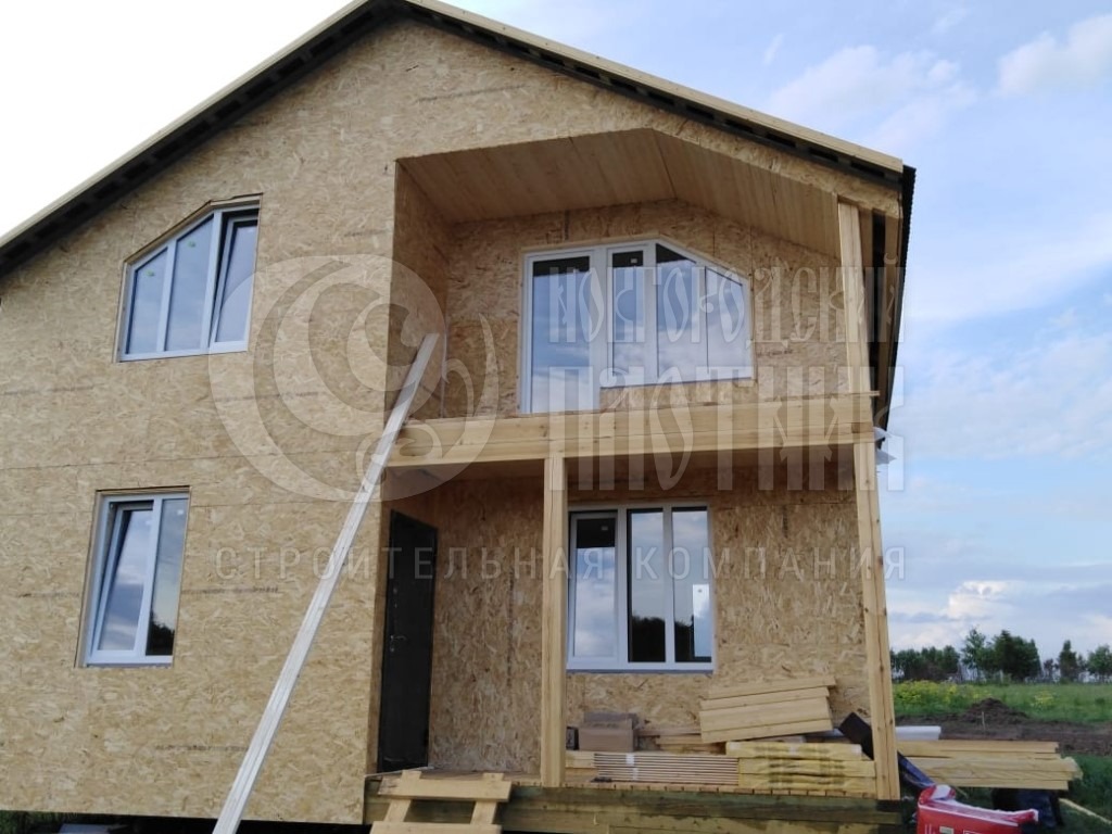 Строительство каркасного дома завершилось в июне 2019г. Каркас стен снаружи обшит ОСБ 9мм и сайдингом Docke (цвет "сливки" форма корабельный брус), внутри дома стены и потолок обшиты вагонкой камерной сушки (толщина вагонки 16мм). Покрытие крыши ондулин. Окна ПВХ выполнены под заказ. Утепление стен, полов и потолков - каменная вата Роквул толщиной 200мм.