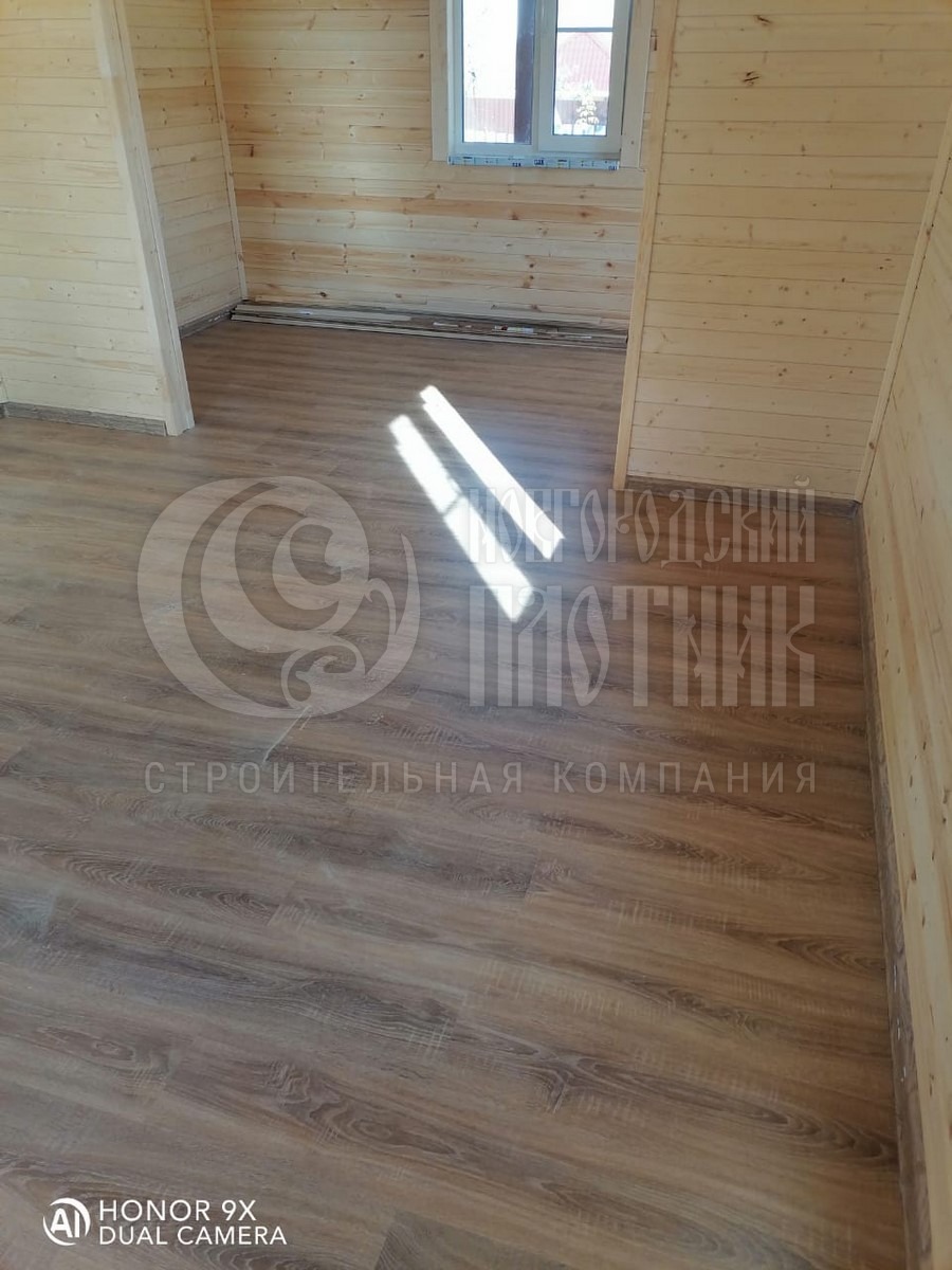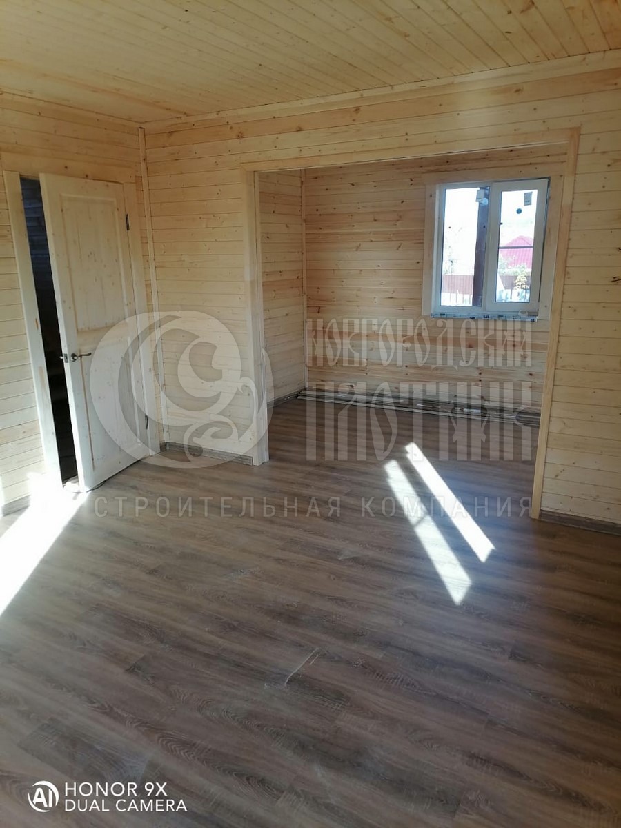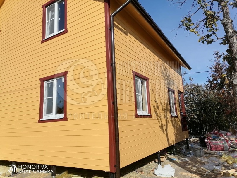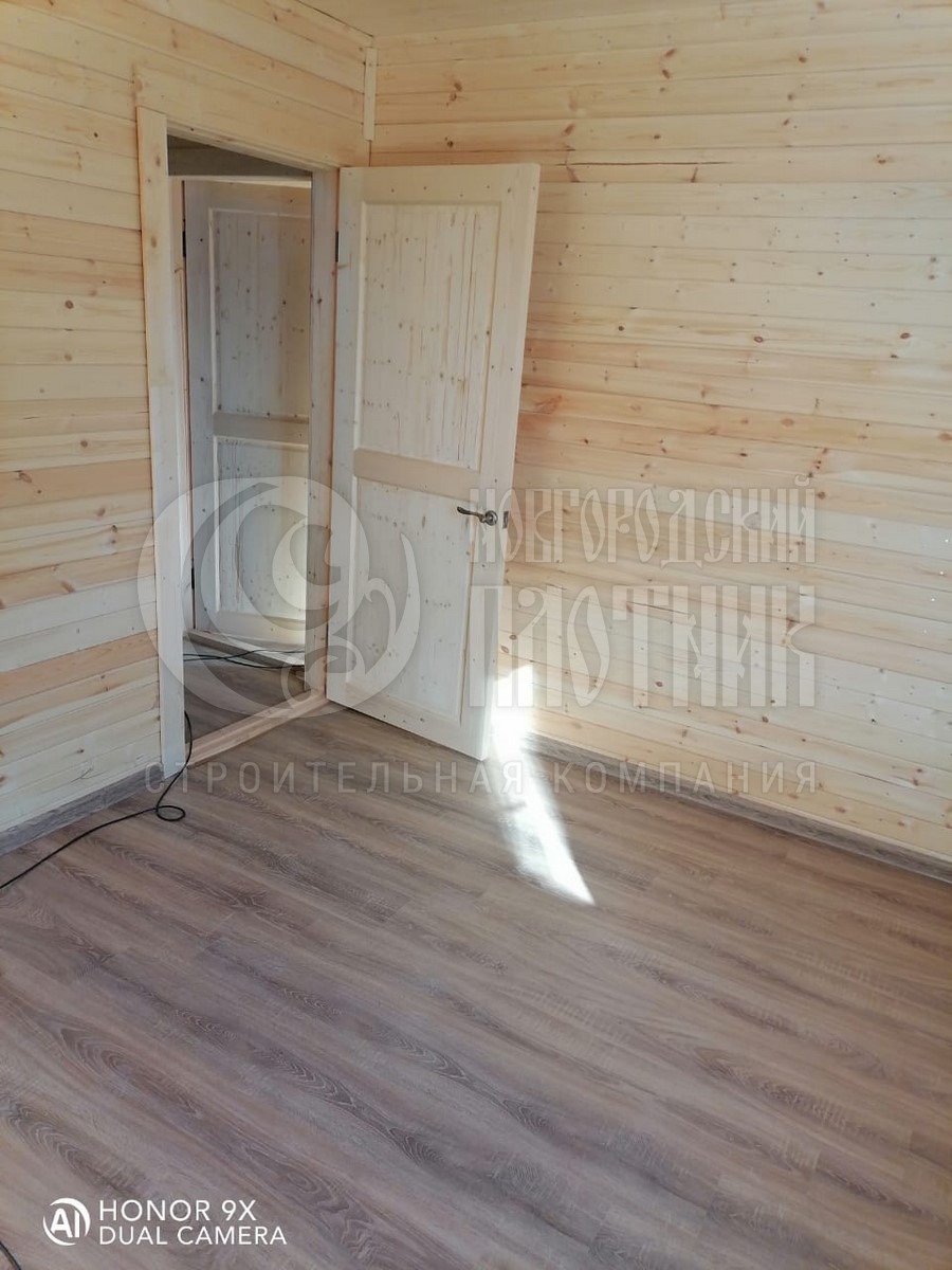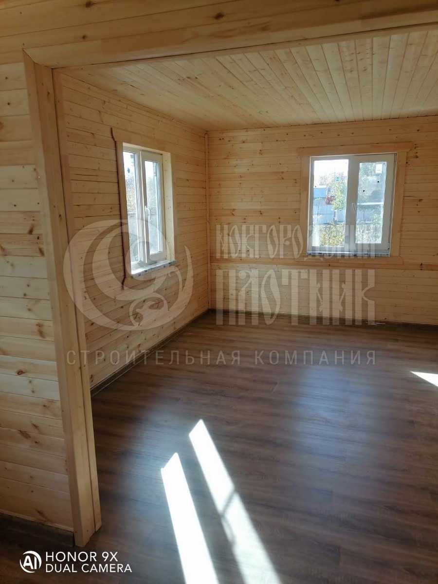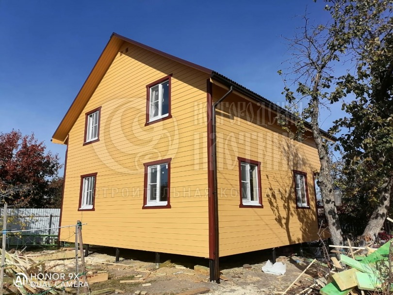 В октябре 2020г. завершилось строительство дома по проекту Д-34. Каркас стен толщиной 150мм снаружи обшит имитацией бруса, внутри вагонкой. Утепление стен, полов и потолков - каменная вата Роквул толщиной 150мм. Окна ПВХ двухкамерные. Кровля ондулин. Отдельно бригадой выполнены внутренние работы по отделке комнат: укладка ламината, плитки. В стоимость дома работы не входят.