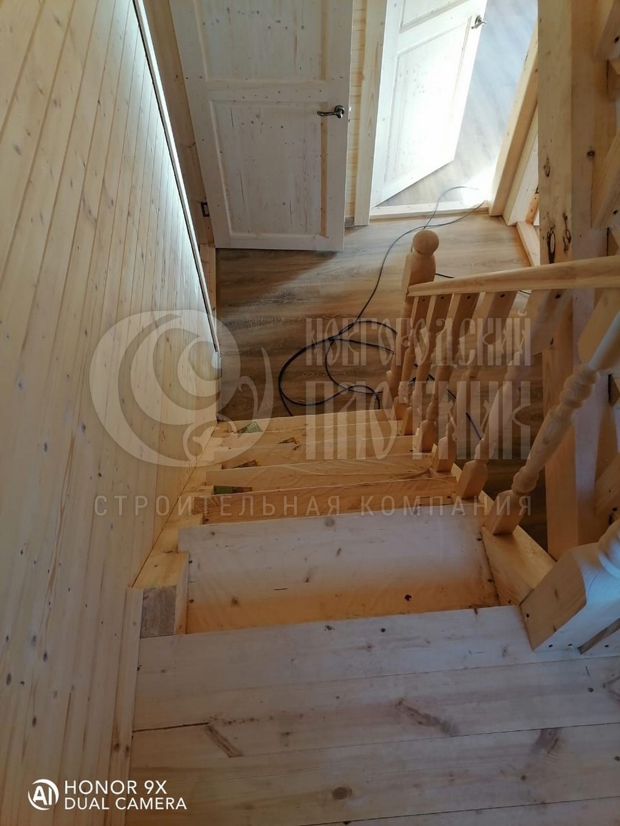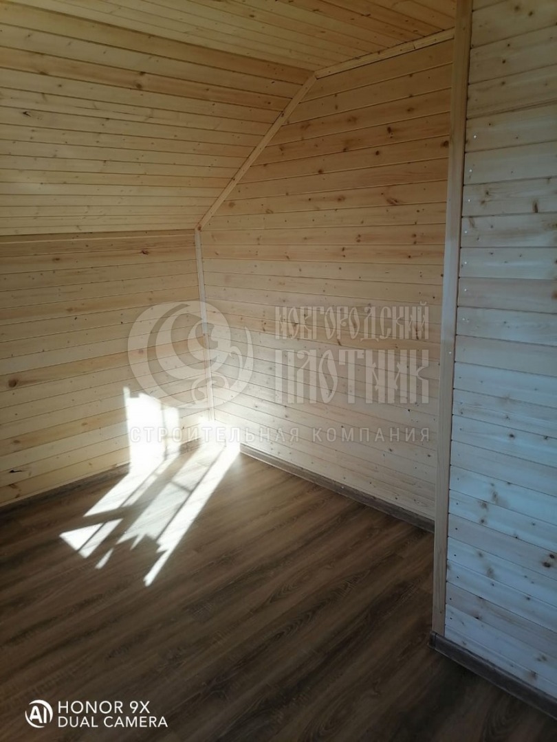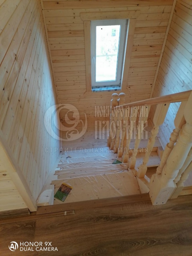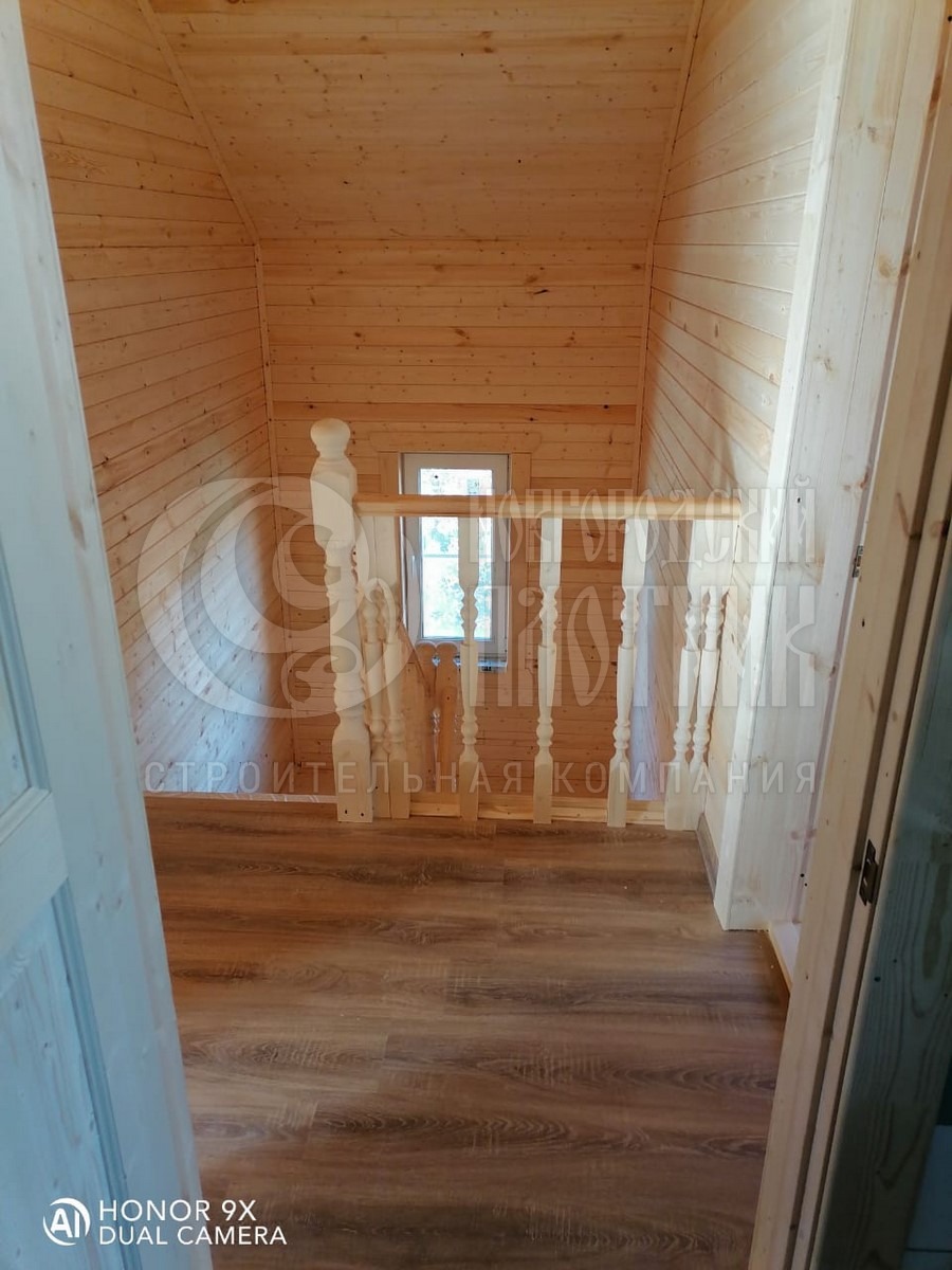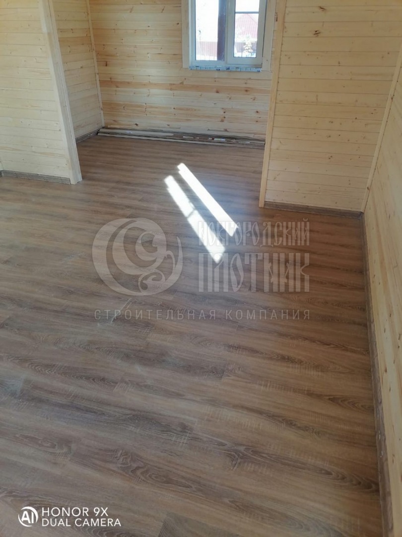 В октябре 2020г. завершилось строительство дома по проекту Д-34. Каркас стен толщиной 150мм снаружи обшит имитацией бруса, внутри вагонкой. Утепление стен, полов и потолков - каменная вата Роквул толщиной 150мм. Окна ПВХ двухкамерные. Кровля ондулин. Отдельно бригадой выполнены внутренние работы по отделке комнат: укладка ламината, плитки. В стоимость дома работы не входят.
