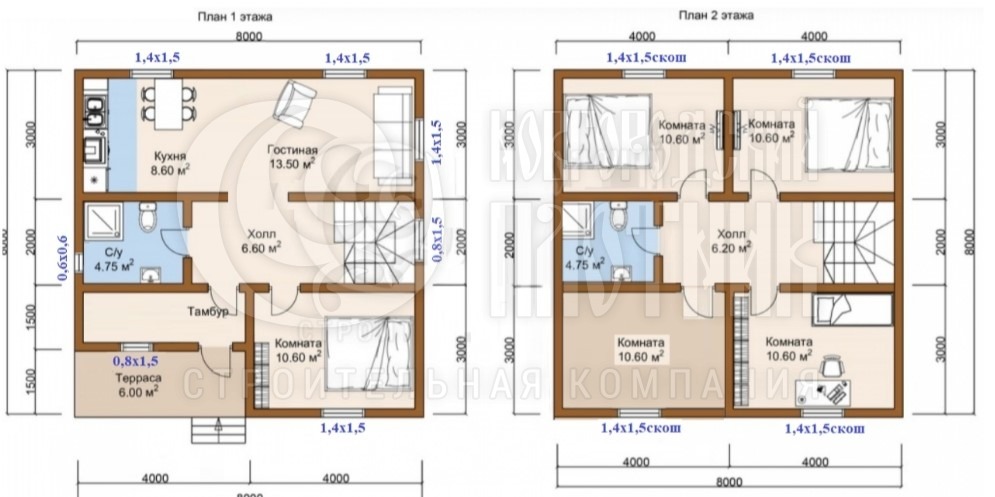 Каркасный полутораэтажный дом 8х8м (проект Д-34)