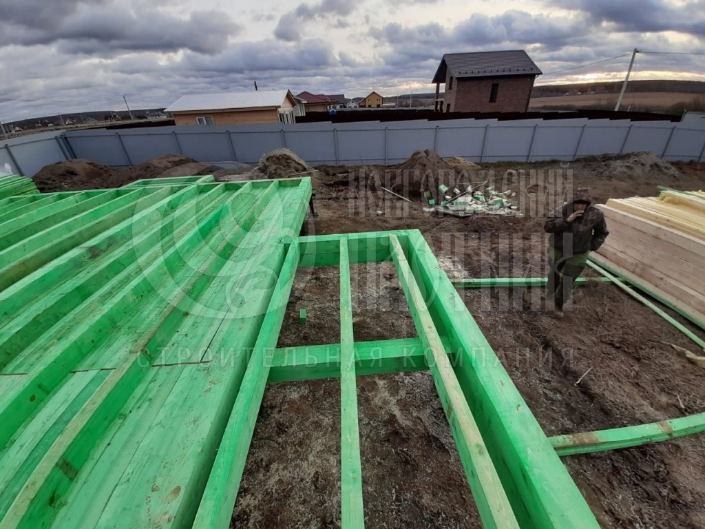 В январе 2020г. завершилось строительство дома на основе проекта Д-34. В планировку были внесены изменения: убрали крыльцо и балкон, добавили выносной балкон с крыльцом и второе крыльцо. Каркас стен 150мм снаружи обшит ОСБ 12мм и сайдингом (сайдинг предоставил заказчик), внутри стены обшиты вагонкой. Окна ПВХ выполнены под заказ. Кровля металлочерепица.