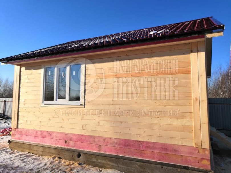 В декабре 2020г. завершилось строительство брусовой бани по проекту Б-11. Стены выполнены из профилированного бруса 190х140мм (ШхВ), профиль прямой с обеих сторон. Утепление пола и потолка - Роквул 200мм. Окна ПВХ двухкамерные. Кровля металлочерепица. Дополнительно выполнено антисептирование основания, сборка бруса на деревянные нагеля, углы собраны в "теплый угол".