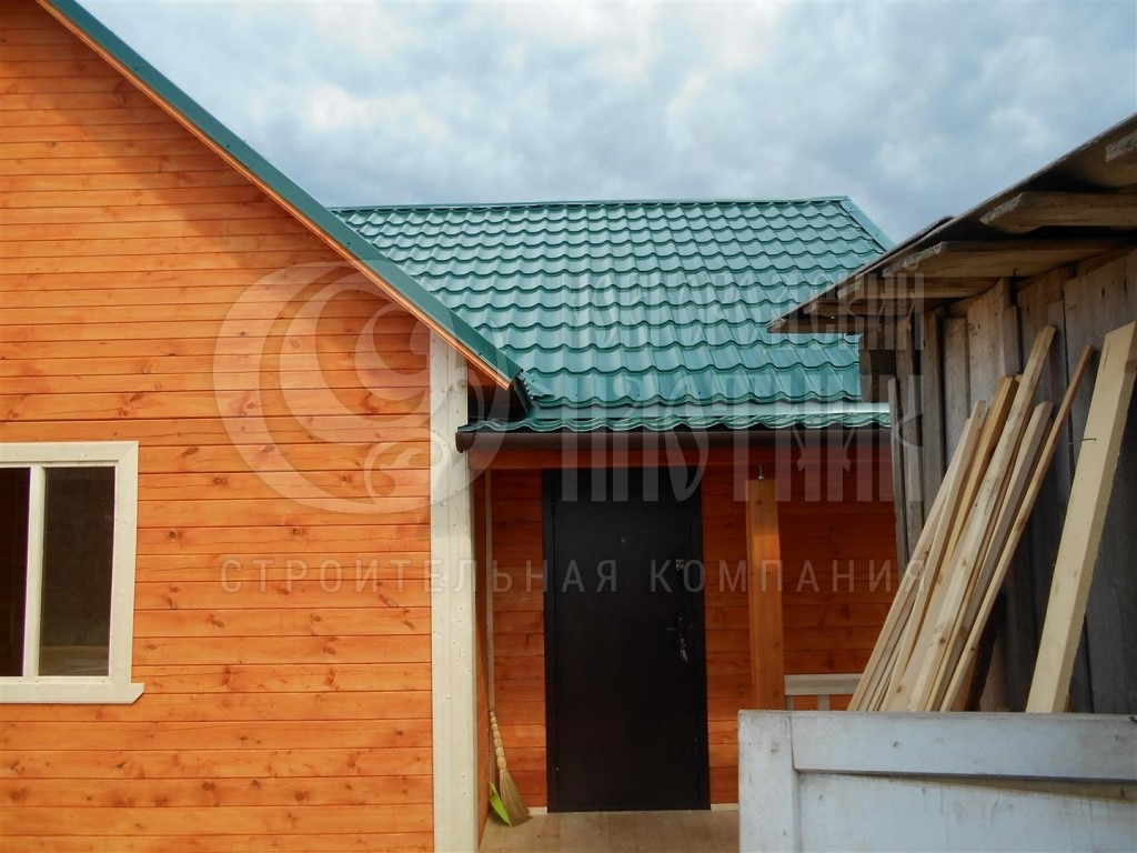 Стены выполнены из строганного профилированного бруса 140х140мм (профиль прямой). Кровля металлочерепица.