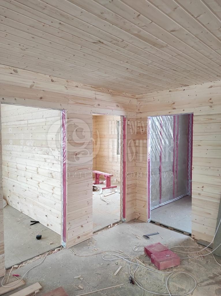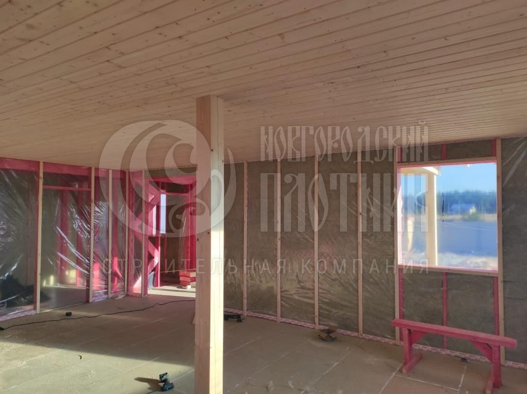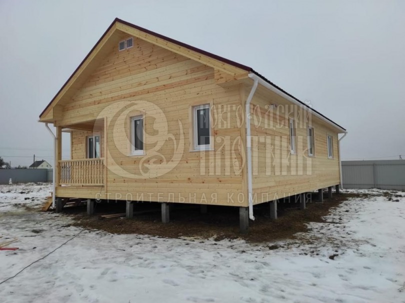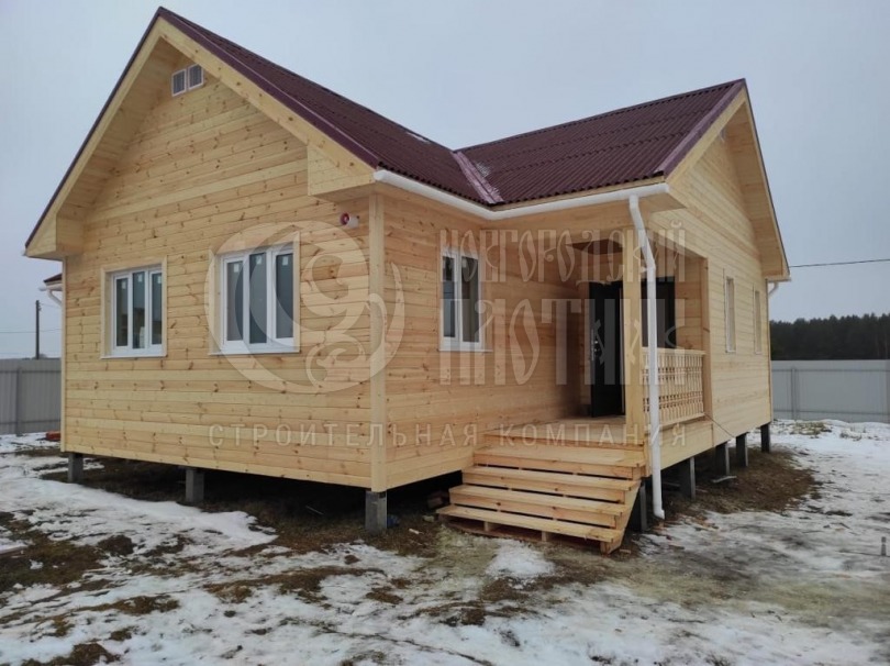 В ноябре 2020г. завершилось строительство каркасного одноэтажного дома по проекту Д-99. Каркас стен толщиной 150мм снаружи и внутри обшит имитацией бруса, потолки вагонкой. Утепление стен - каменная вата Роквул толщиной 150мм, полы утеплены в 200мм. Окна ПВХ двухкамерные. Кровля ондулин. Дополнительно выполнено полное антисептирование всего каркаса.