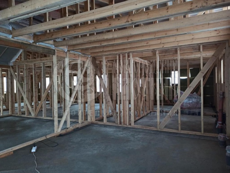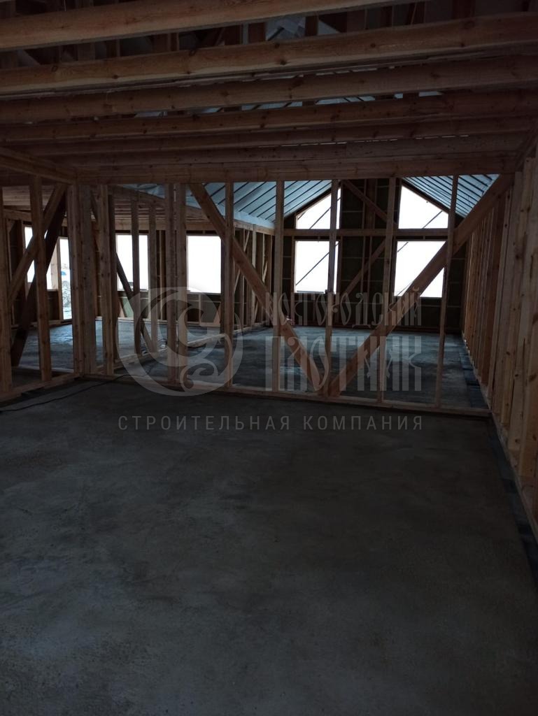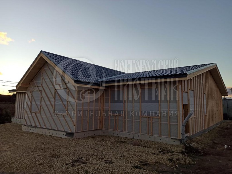 В октябре 2022г. завершилось строительство одноэтажного дома по индивидуальному проекту заказчика. Каркас дома выполнен из бруска 50*150мм с контробрешеткой 50мм. По желанию заказчика частично выполнено утепление стен с пароизоляцией. Вся дальнейшая отделка будет выполнена силами заказчика.