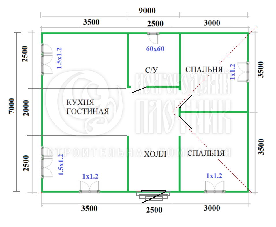Одноэтажный каркасный дом 7х9м (индивидуальный проект)