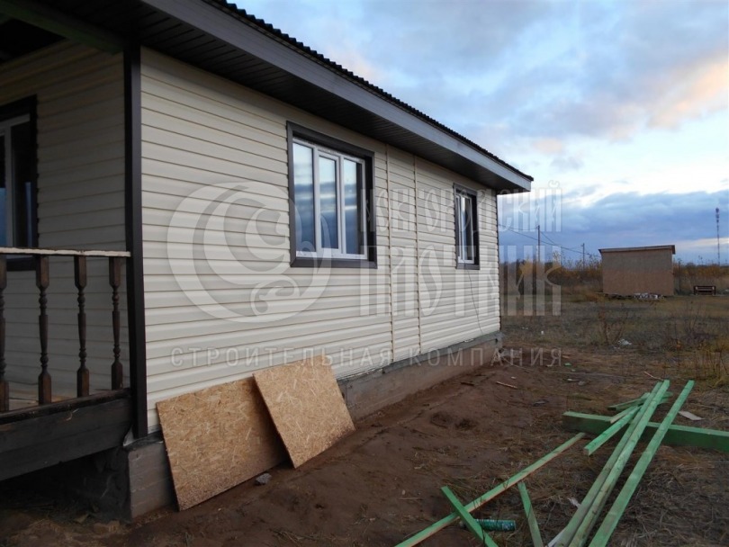 Строительство дома завершилось в ноябре 2018г. Каркас стен снаружи обшит OSB (предоставлен Заказчиком), внутри блок-хаусом (предоставлен Заказчиком). Утепление стен, полов и потолков - каменная вата Роквул толщиной 150мм. Крыша вальмовая, покрытие ондулин. Окна ПВХ двухкамерные. Дом снаружи обшит сайдингом Docke.