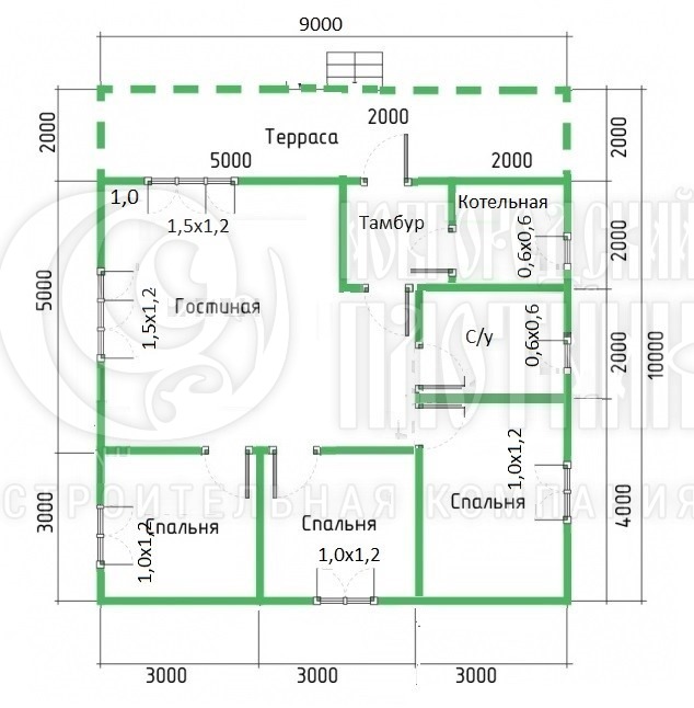Одноэтажный каркасный дом 9х10м (проект Д-51 с изменениями)