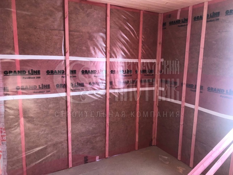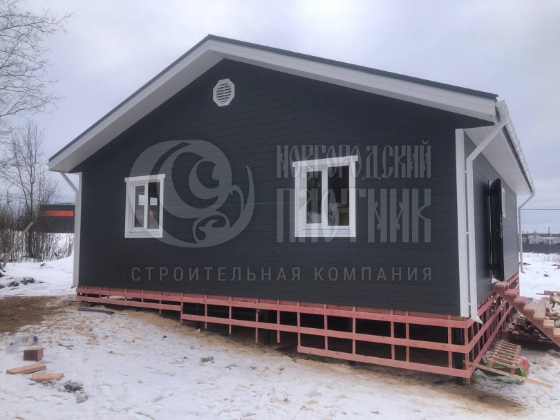 В феврале 2026г. завершилось строительство каркасного дома по проекту Д-3. Сухой строганый каркас 200мм снаружи и внутри обшит имитацией бруса, потолки вагонкой (толщина вагонки 16мм). Весь каркас дополнительно антисептирован. Наружная имитация покрашена в заводских условиях. Утепление стен, полов и потолков - Роквул 200мм. Окна стандартные двухкамерные. Кровля металлочерепица. В полах проложена сетка от грызунов.