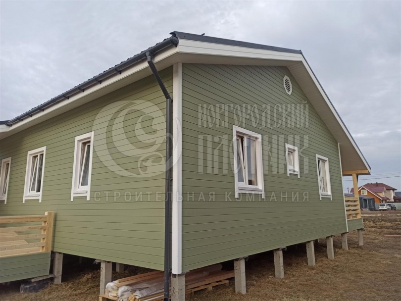 В марте 2026г. завершилось строительство каркасного дома на основе проекта Д-3. Каркас дома выполнен их сухой строганой доски 150мм, снаружи и внутри обшит имитацией бруса, потолки вагонкой. Наружная имитация покрашена в заводских условиях. Утепление стен - Роквул 150мм, полы и потолки утеплены в 200мм. Окна ПВХ двухкамерные. Кровля металлочерепица (серая). Весь каркас дополнительно антисептирован.
