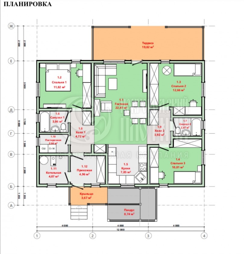 Одноэтажный каркасный дом 9х12м с пандусом (проект Д-3)