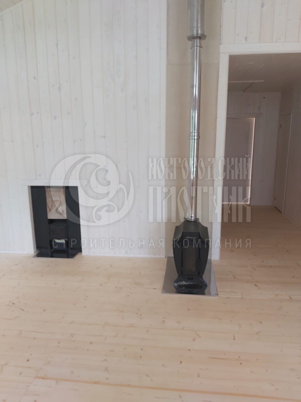 В августе 2024г. завершилось строительство дома по очень популярному проекту среди одноэтажных домов - проекту Д-16. Сам дом имеет размеры 9х12м (в таком размере легко помещаются просторная гостиная, совмещенная с кухней, две спальни, два санузла, гардеробная, котельная и даже сауна). А просторная угловая терраса площадью 40 квадратных метров помимо своей основной функции (прекрасная зона отдыха) придаёт дому свой уникальный внешний вид, который дополняют панорамные окна (выполнены под заказ). В гостиной потолок подшит по стропилам, вся имитация внутри дома прибита вертикально. Сам каркас дома толщиной 150мм выполнен из сухой строганой доски, полы и потолки утеплены Роквулом 200мм, основные стены в 150мм. Покрытие крыши - ондулин "черепица". Дополнительно выполнено антисептирование основания, установлены вытяжки, водосточная система, шумоизоляция перегородок (Роквул 100мм). Под имитацией бруса, как снаружи, так и внутри стены дополнительно обшиты ОСБ 12мм. Покраска дома и установка печей выполнены по договоренности с бригадой.