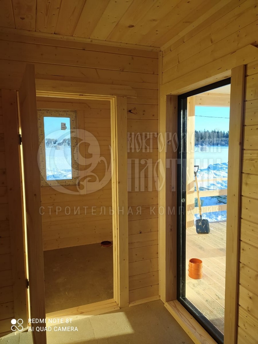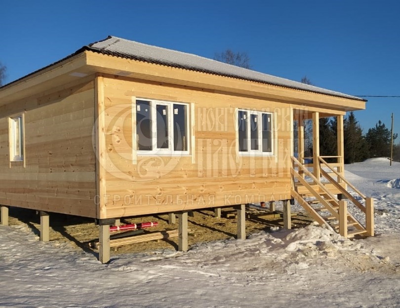 В феврале 2022г. построен каркасный дом по проекту Д-1. Каркас стен толщиной 150мм снаружи обшит имитацией бруса, внутри вагонкой. Утепление стен, полов и потолков - каменная вата Роквул толщиной 150мм. Крыша вальмовая, покрытие ондулин. Окна ПВХ двухкамерные.