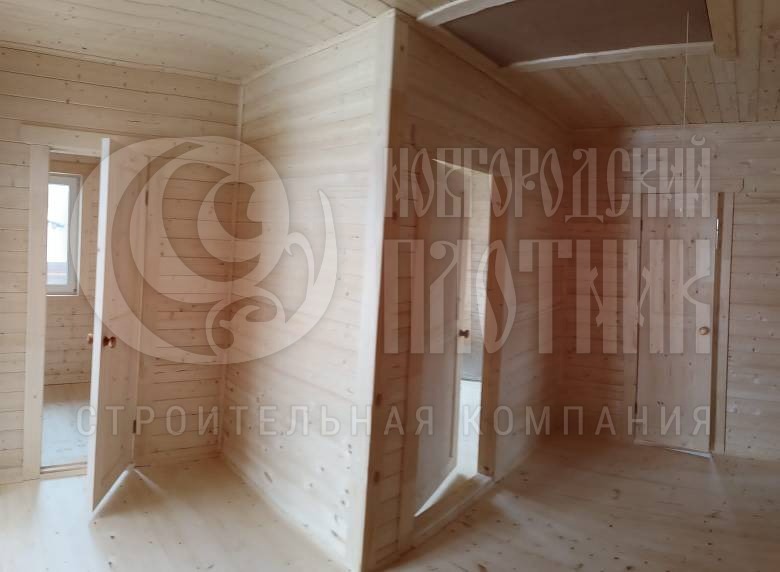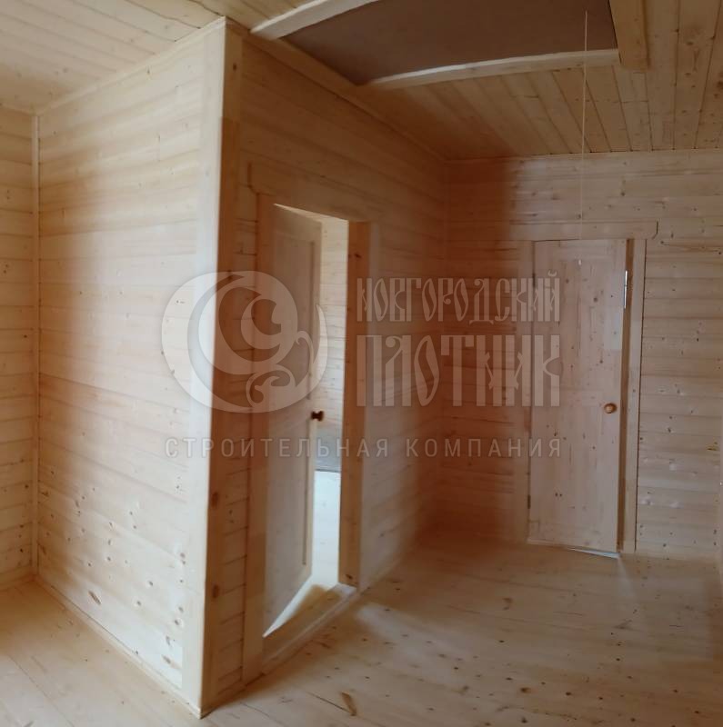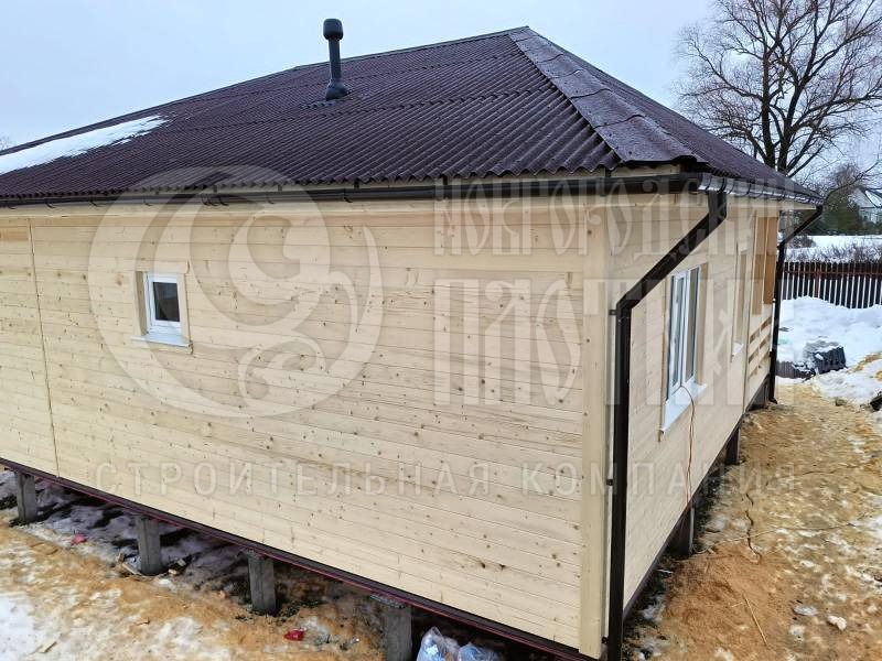 В декабре 2023г. построен каркасный одноэтажный дом по проекту Д-1. Сухой строганый каркас снаружи обшит имитацией бруса, внутри вагонкой. Утепление стен и потолка - Роквул 150мм, полы утеплены в 200мм. Крыша вальмовая, покрытие ондулин. Дополнительно выполнено антисептирование основания, установлена вытяжка.