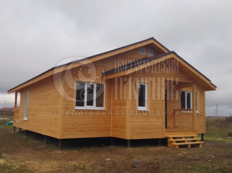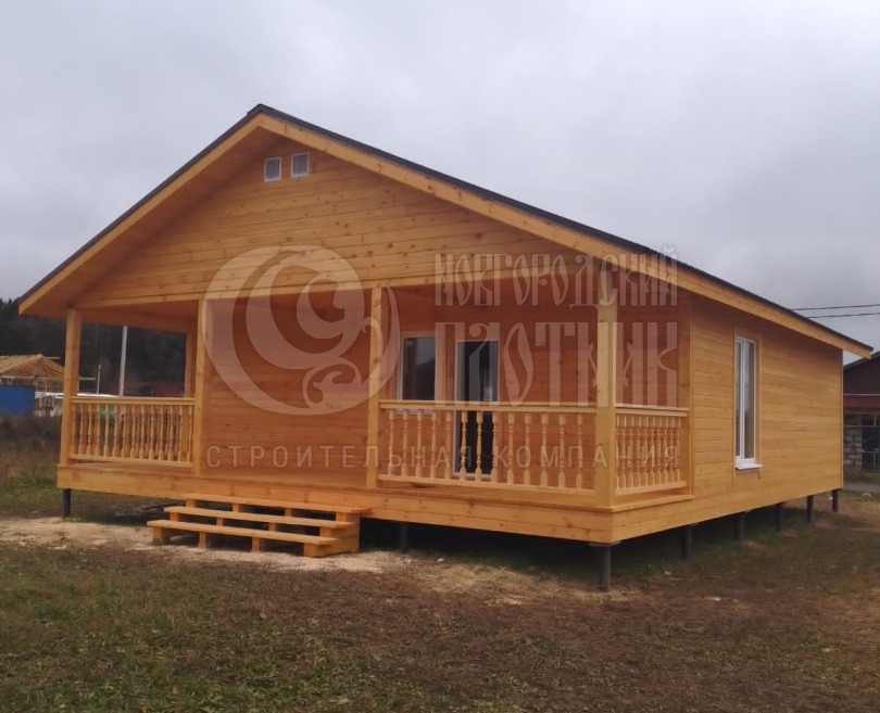В октябре 2022г завершилось строительство каркасного дома по проекту Д-101. К проекту добавлена терраса под общей крышей. Часть крыльца зашита под тамбур. Каркас стен толщиной 150мм снаружи обшит имитацией бруса, внутри вагонкой. Утепление стен, полов и потолков - Роквул 150мм. Кровля ондулин. Дополнительно выполнено антисептирование всего каркаса и проложена сетка от грызунов.